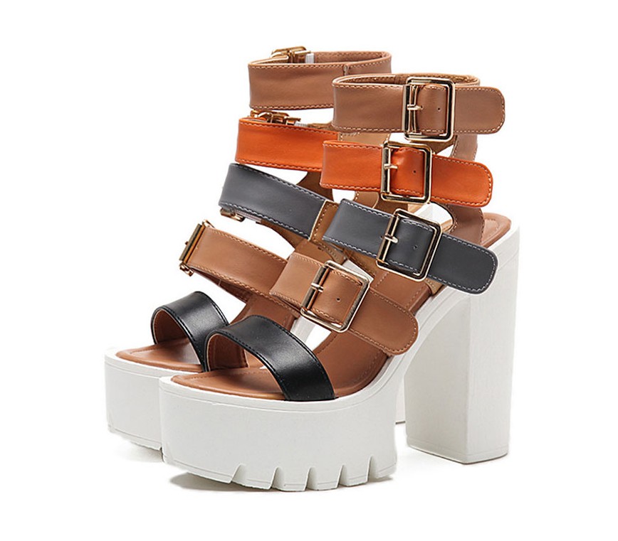 These high sandals feature a fastening with 5 buckles, making them truly unique.