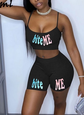 Women's Sexy Crop Top and Biker Shorts Set