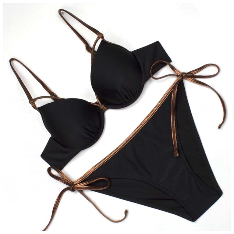Sexy two-piece swimsuit with a simple fashionable design that will look great on you both on holiday and at home! The combination of vibrant cheerful and shiny colours will brighten up every day by the water.