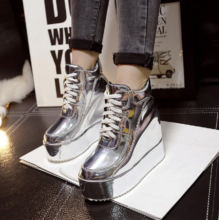 Every woman will love these platform ankle boots in shiny colours. With these glossy shoes, you will be impossible to overlook!