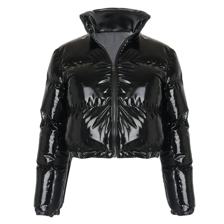 Women's Shiny Quilted Crop Top Winter Jacket