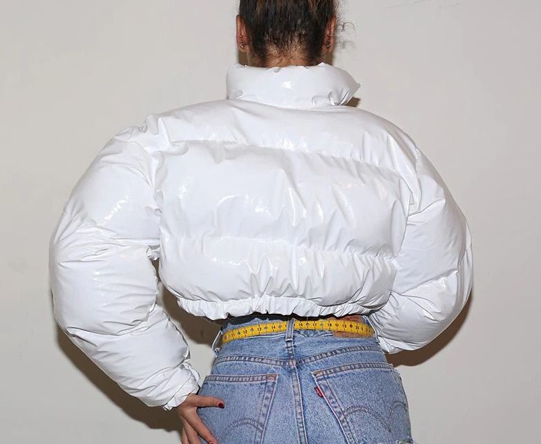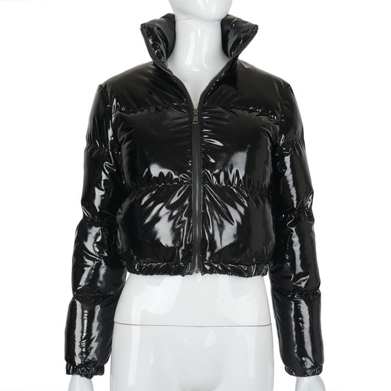 Women's shiny quilted crop top winter jacket