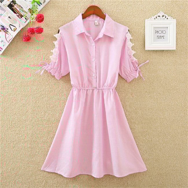 Comfortable women's dress with cut-outs on the sleeves adorned with lace.