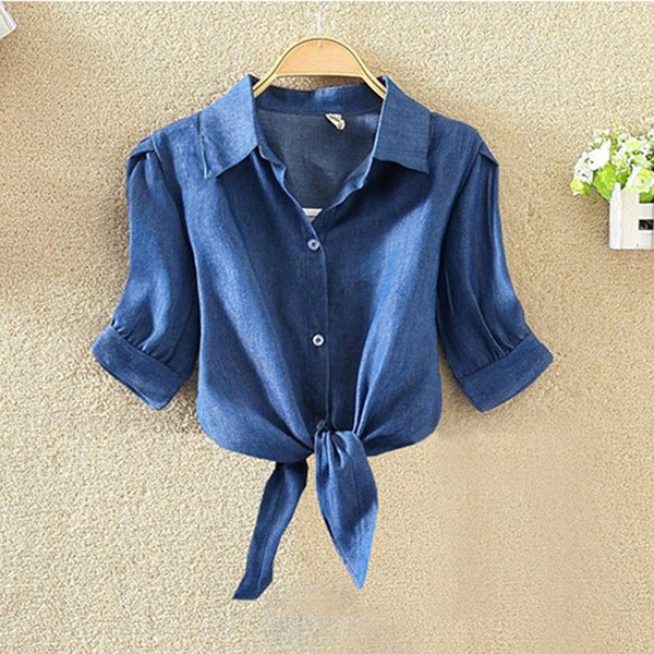 It features a simple knot at the bottom, which makes the shirt shorter.