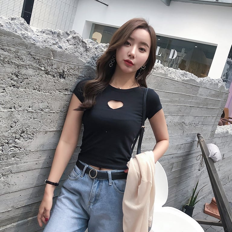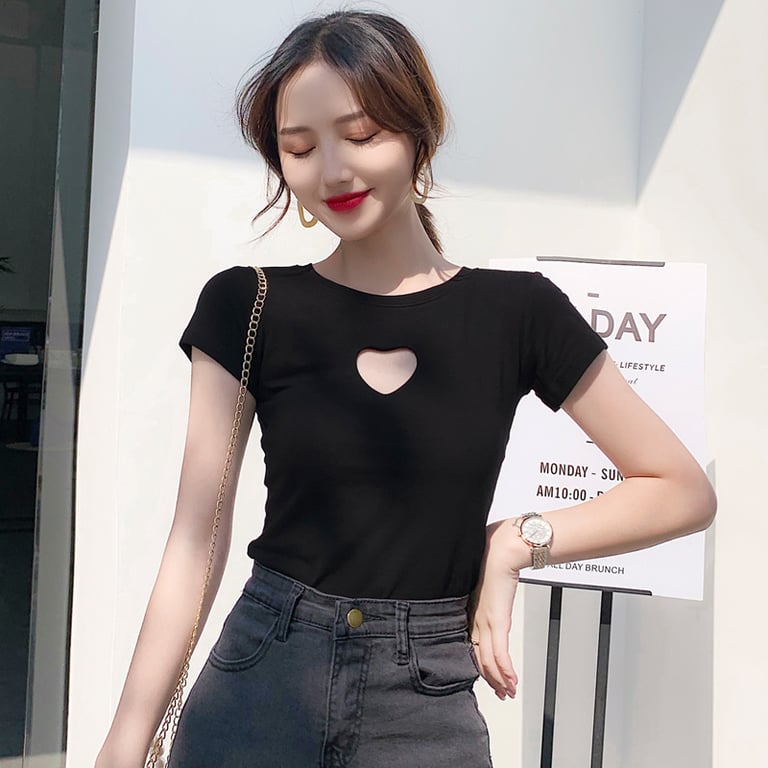 Women's short-sleeve t-shirt with a romantic heart on the chest