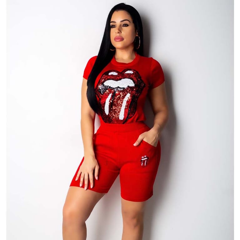 Super set that includes shorts and a crop top for ladies. Suitable for spring and summer.