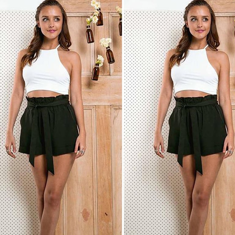 Women's high-waisted shorts with a tie belt. Loose elegant cut with side pockets. Available in multiple colour options.