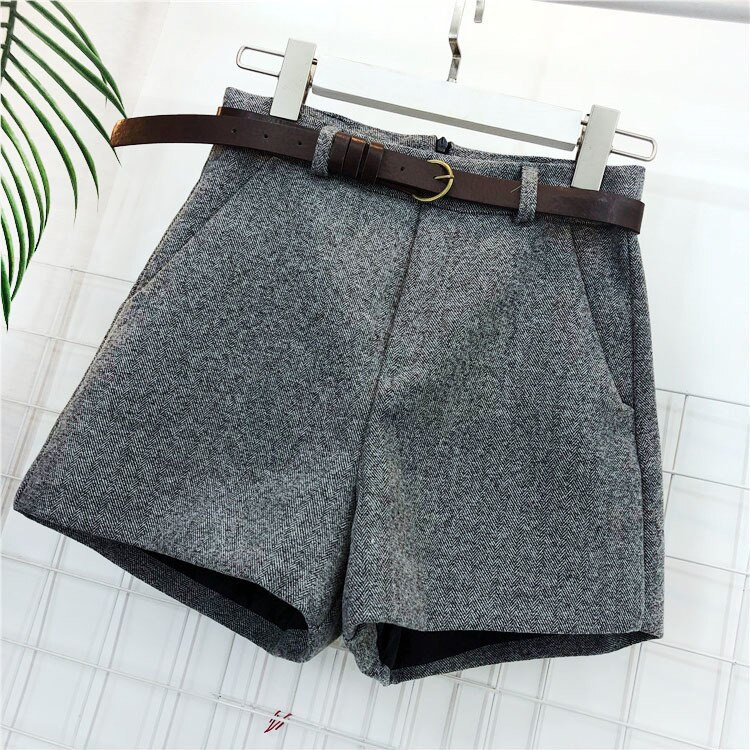Women's elegant shorts with a mid-rise waist and a faux leather belt. Fitted cut with two side pockets. Available in multiple colour options.