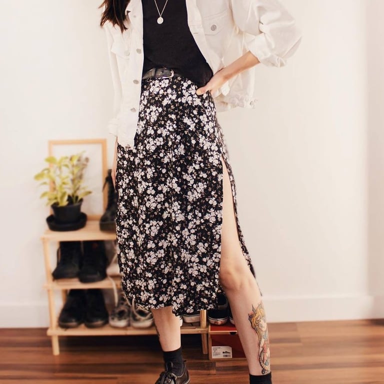 Women's skirt with a high waist and a slit