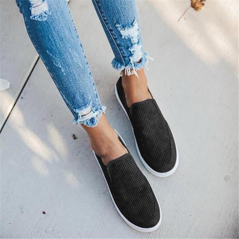 Women's low slip-on shoes with a flat rubber sole. Easy to slip on. Made of faux leather with perforations. Available in multiple colour options.