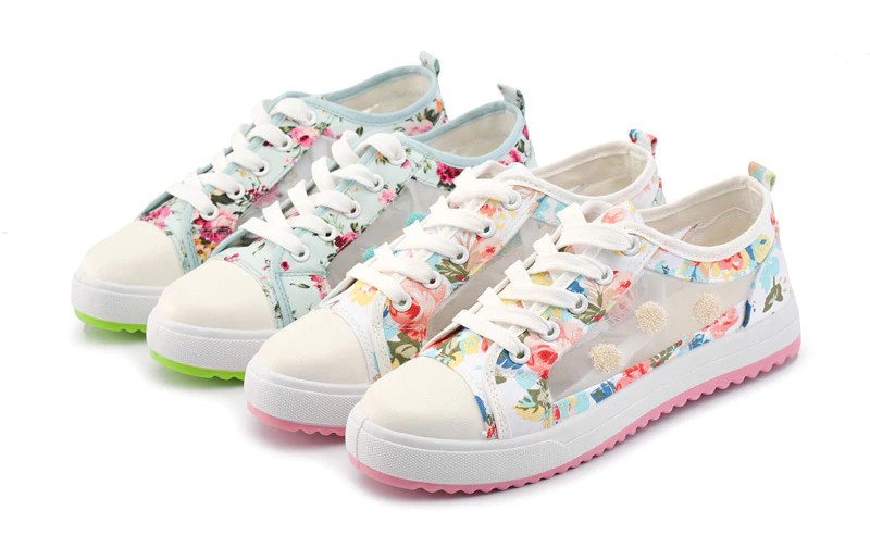 These stylish trainers with a floral print and fine mesh are very comfortable on the feet.