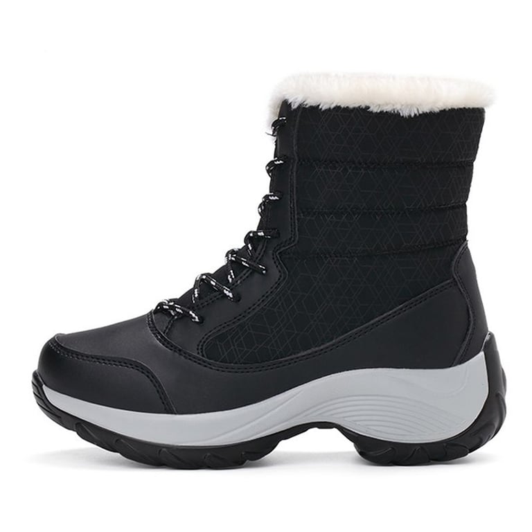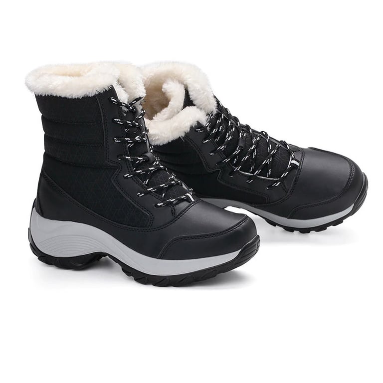 Women's winter waterproof snow boots. The boots are lace-up, have a non-slip sole, and are lined with fur inside. Available in four colour options.