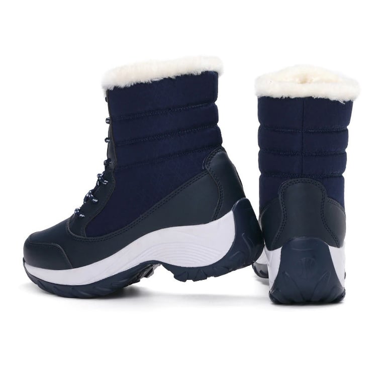 Women's winter waterproof snow boots. The boots are lace-up, have a non-slip sole, and are lined with fur inside. Available in four colour options.