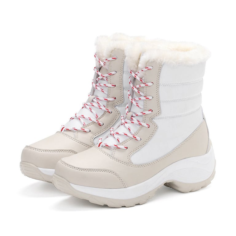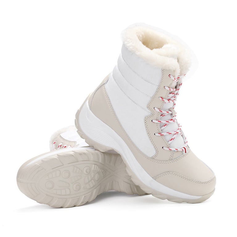 Women's winter waterproof snow boots. The boots are lace-up, have a non-slip sole, and are lined with fur inside. Available in four colour variants.