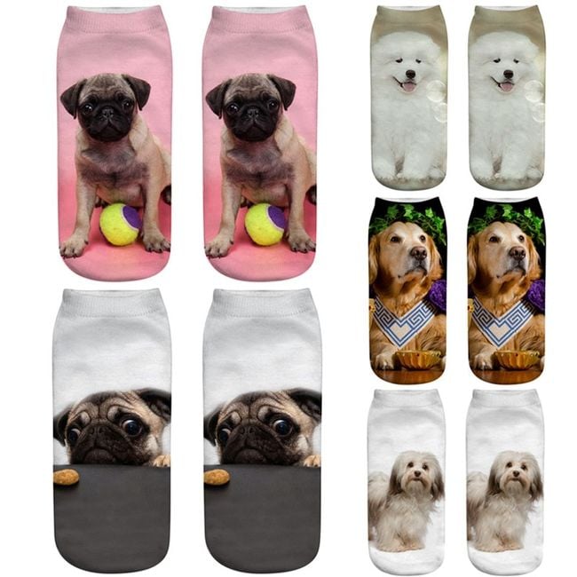 Stylish 3D socks with dogs in several variations and a universal size of 34-39.