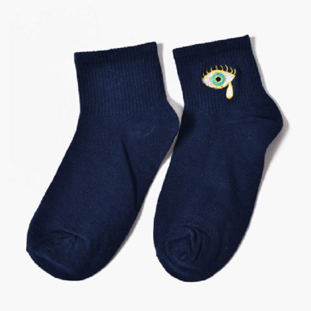 These solid-coloured socks with an eye design are very stylish!
