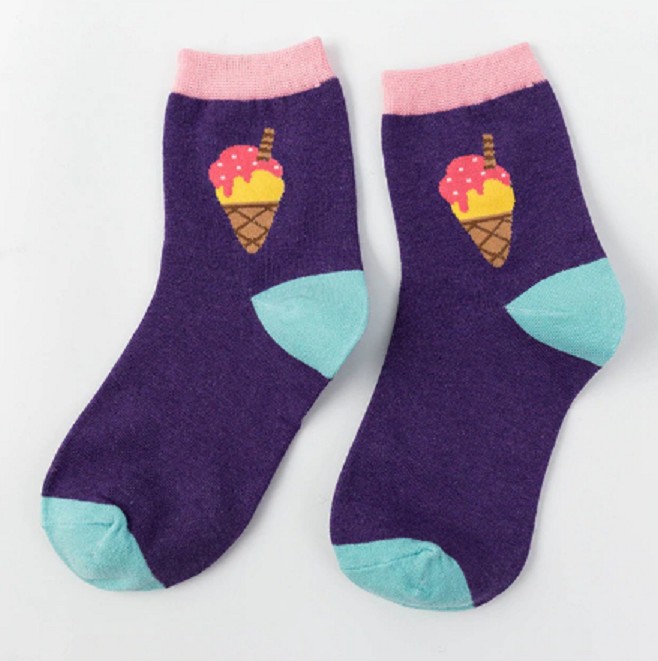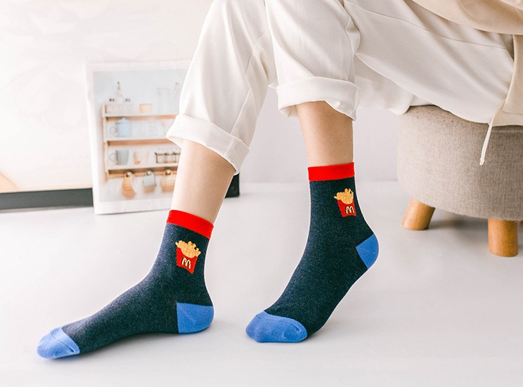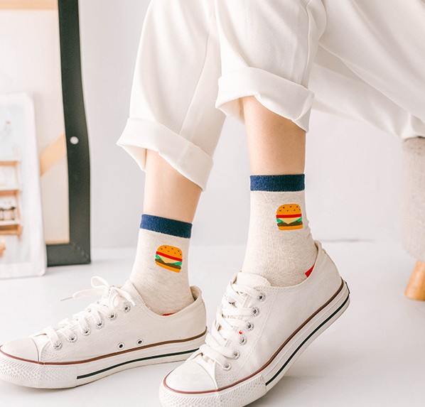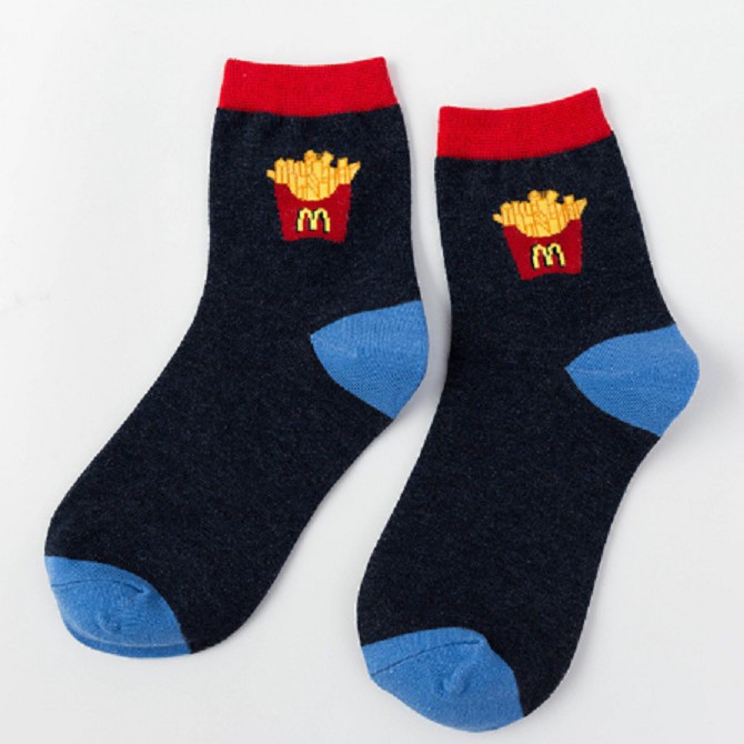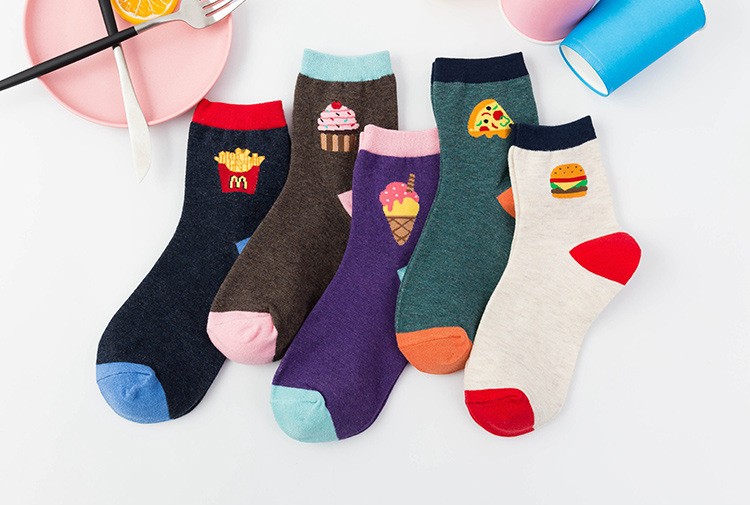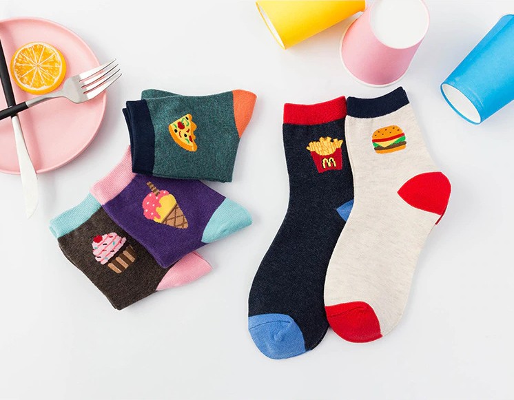 Funny socks! The socks feature mini food images at the top of the ankle.