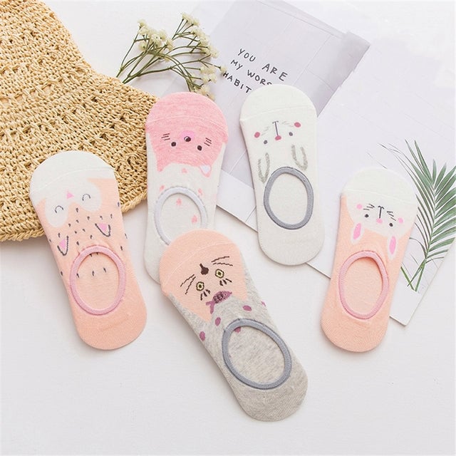 Women's socks with various designs.