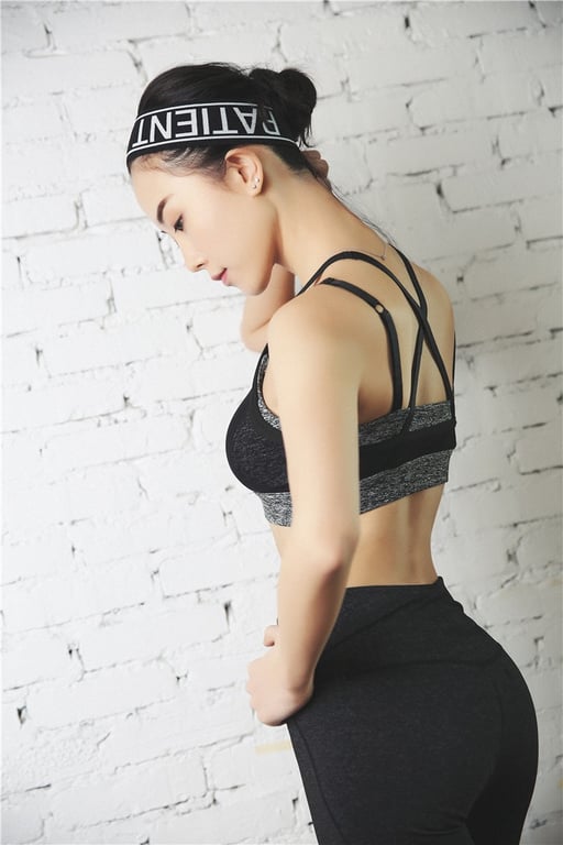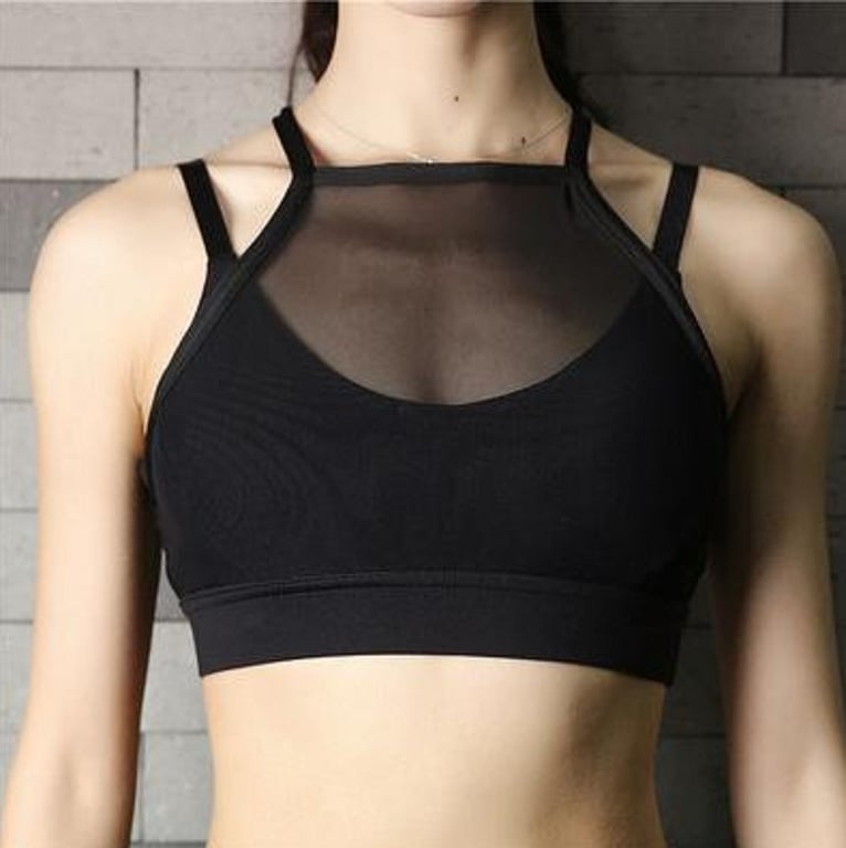 The bra features narrow straps and a mesh panel across the bust for added comfort.