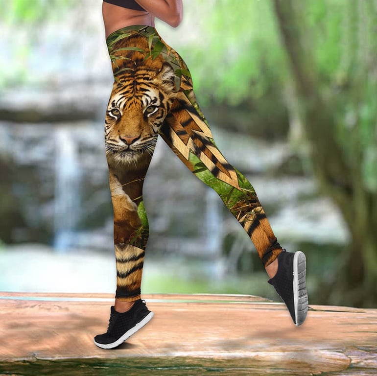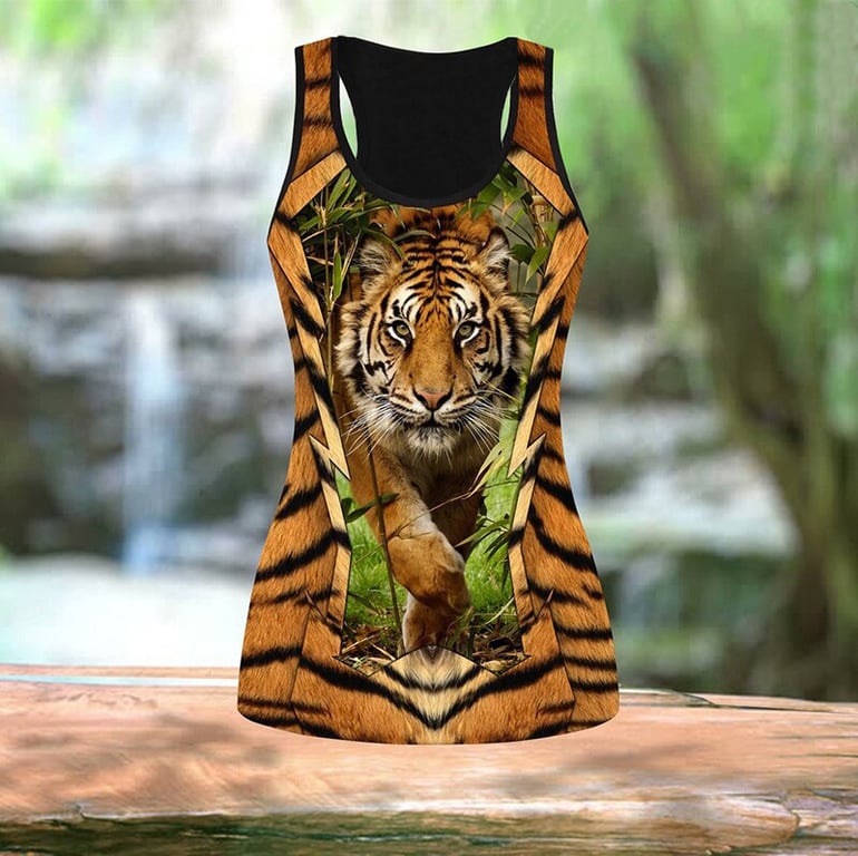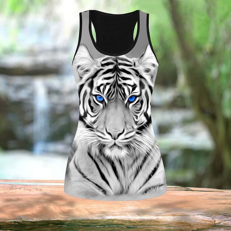 Women's Sports Fitness Clothing – Tank Top and Leggings with 3D Tiger Print