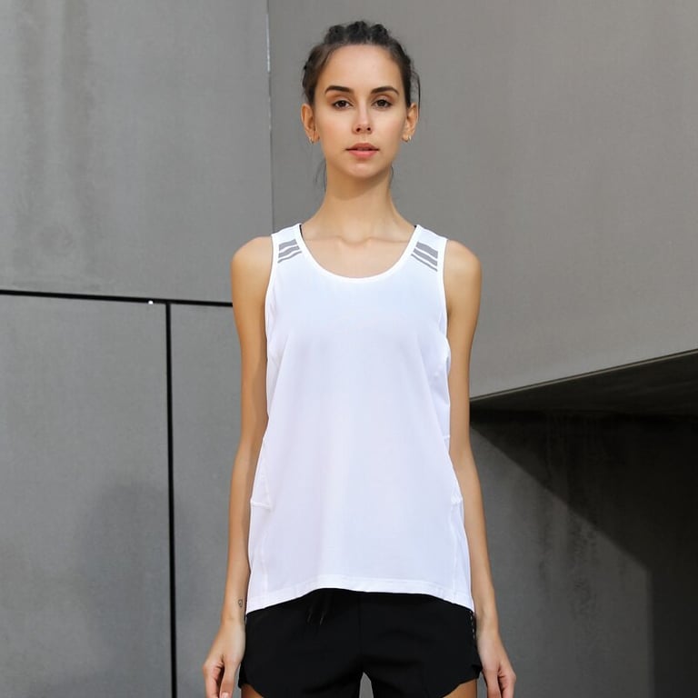Women's sleeveless sports top. Loose fit with a round neckline and reflective elements. Available in multiple colour options.