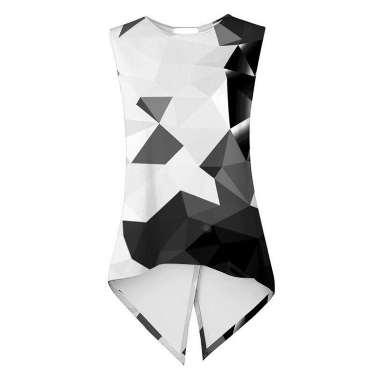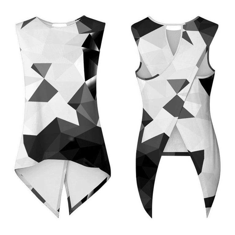 Women's sleeveless sports top. Fitted asymmetric cut with a back neckline. Print with a geometric pattern.