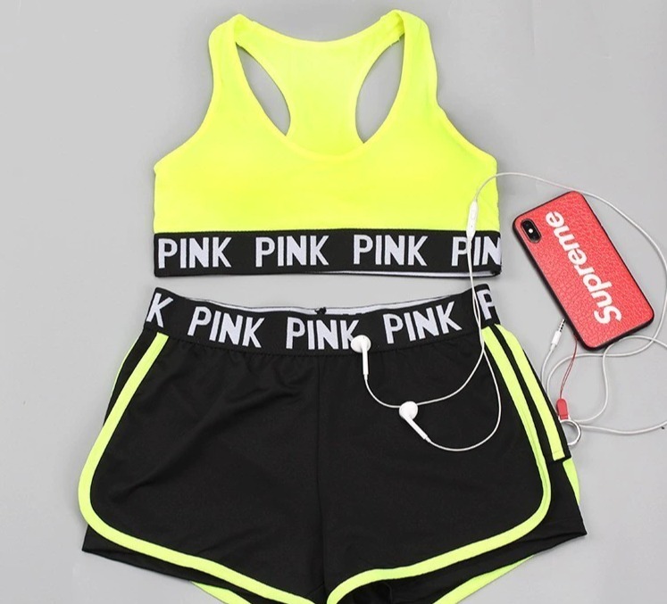 • In this trendy set of shorts and a sports bra, you will look stylish!