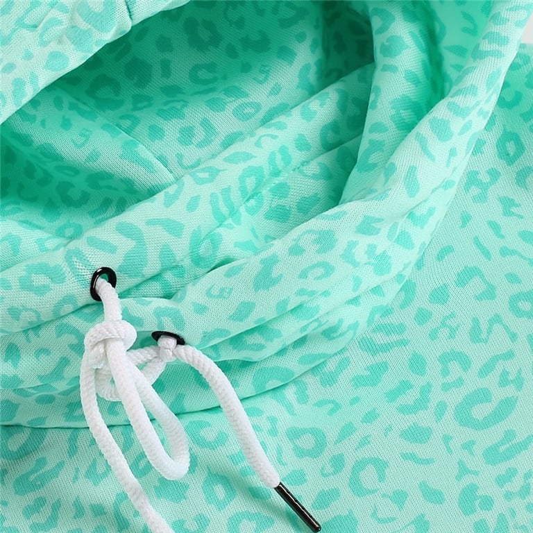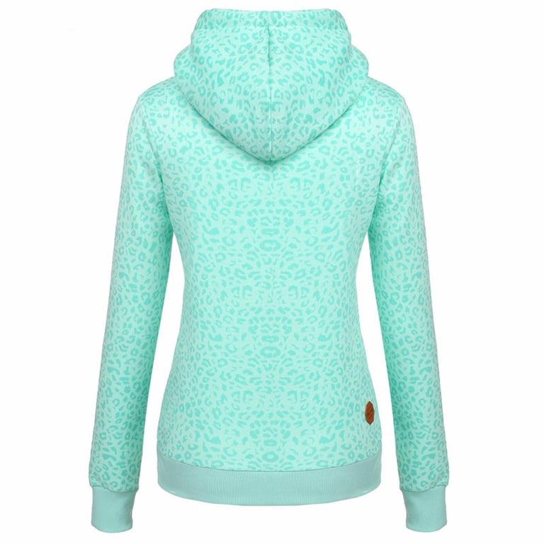 Beautiful new light green hoodie with a leopard print and a small logo on the chest. The hoodie is very comfortable. It is suitable for daily wear in the city as well as for sports. On cooler days, you will appreciate the hood and pockets. The hoodie will highlight your unique style. We recommend it.