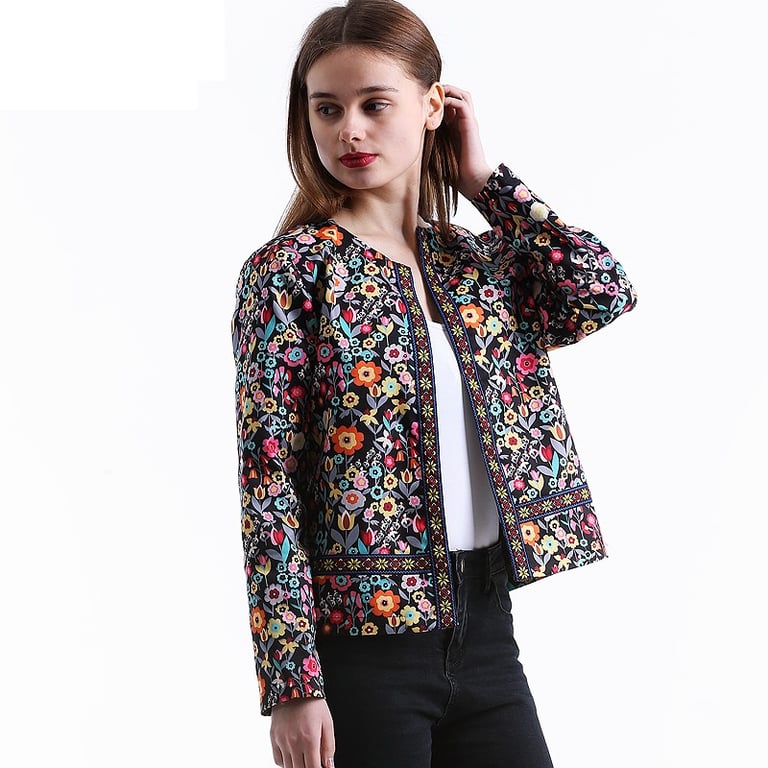Be the centre of attention with this beautiful lightweight floral jacket that will brighten up your wardrobe.