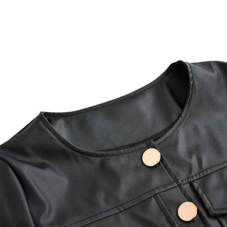 Women's Spring Leather Jacket with Gold Buttons Loren
