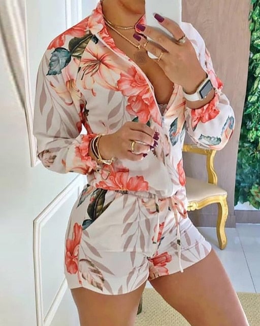 Women's spring set with a blouse and shorts.