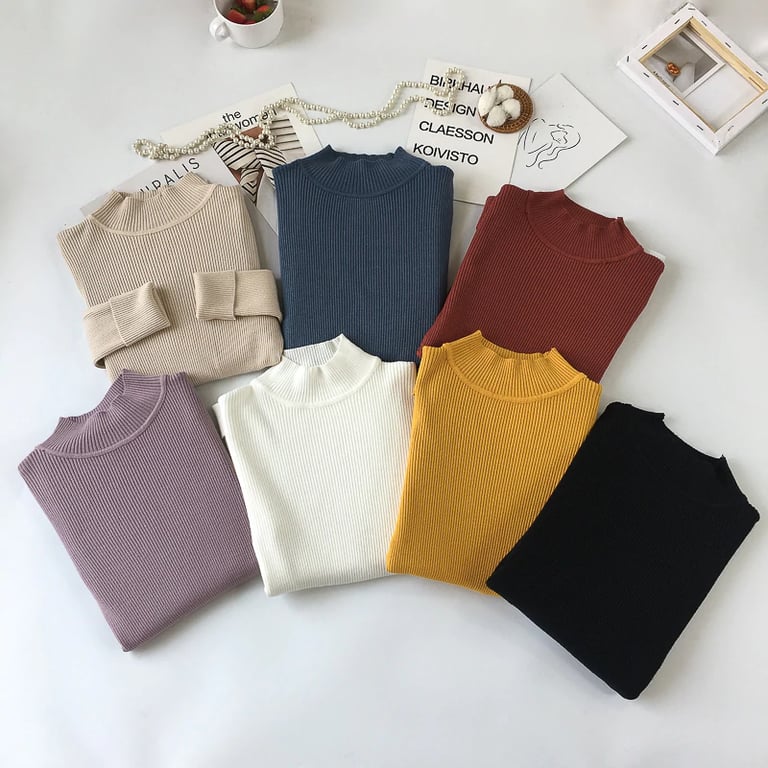 A lightweight and elegant sweater that is easy to combine. It has long sleeves and a low turtleneck. Ideal for the spring season.