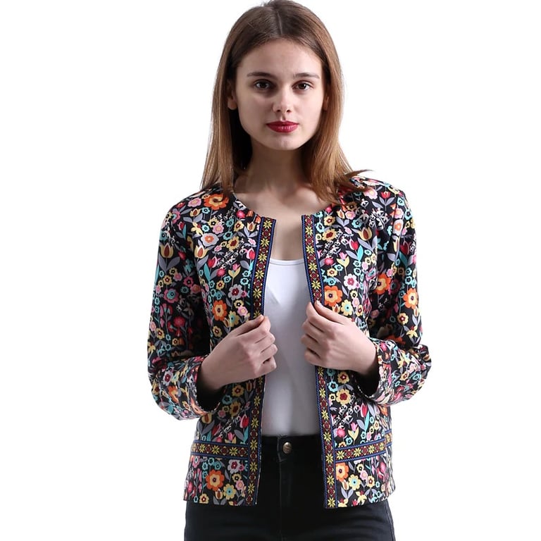 This comfortable women's jacket with a floral pattern can be used on many occasions.