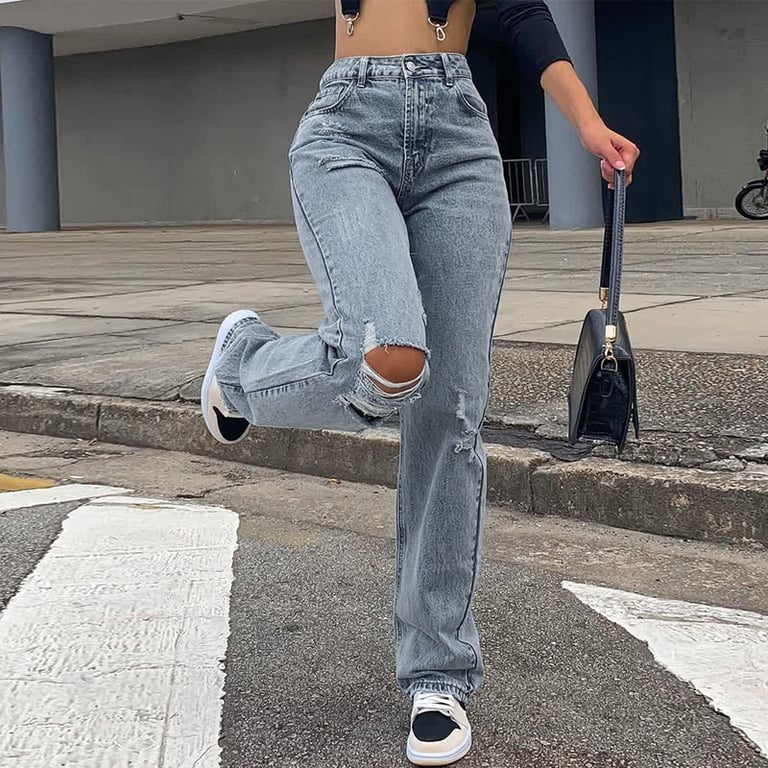 Women's straight vintage jeans in a distressed style