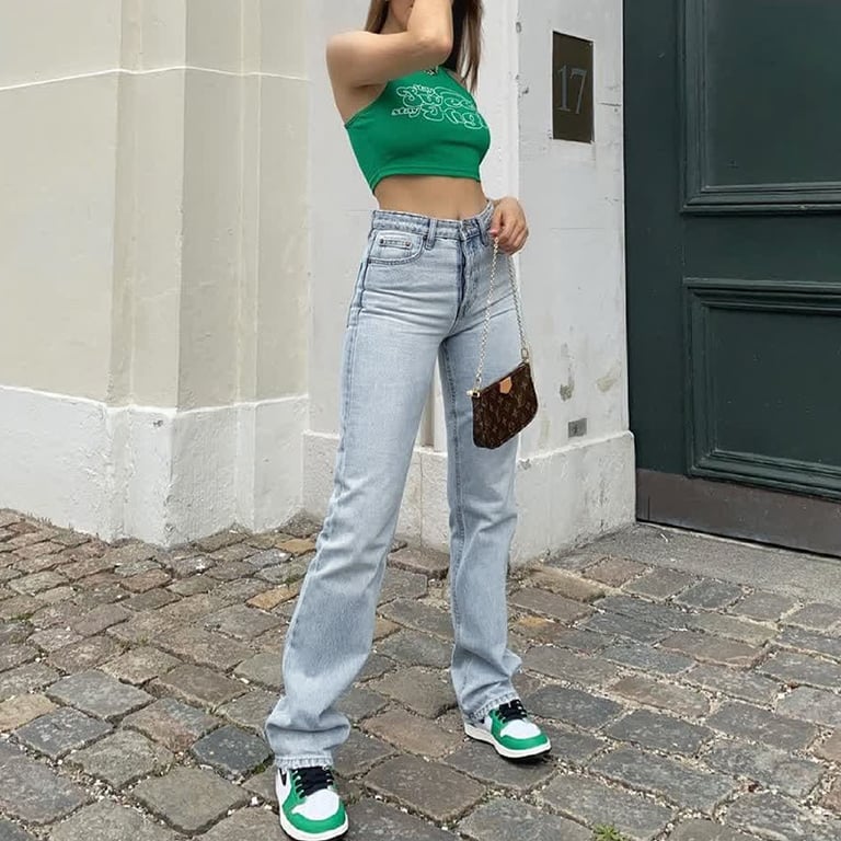 Women's Straight Vintage Jeans in Worn Style