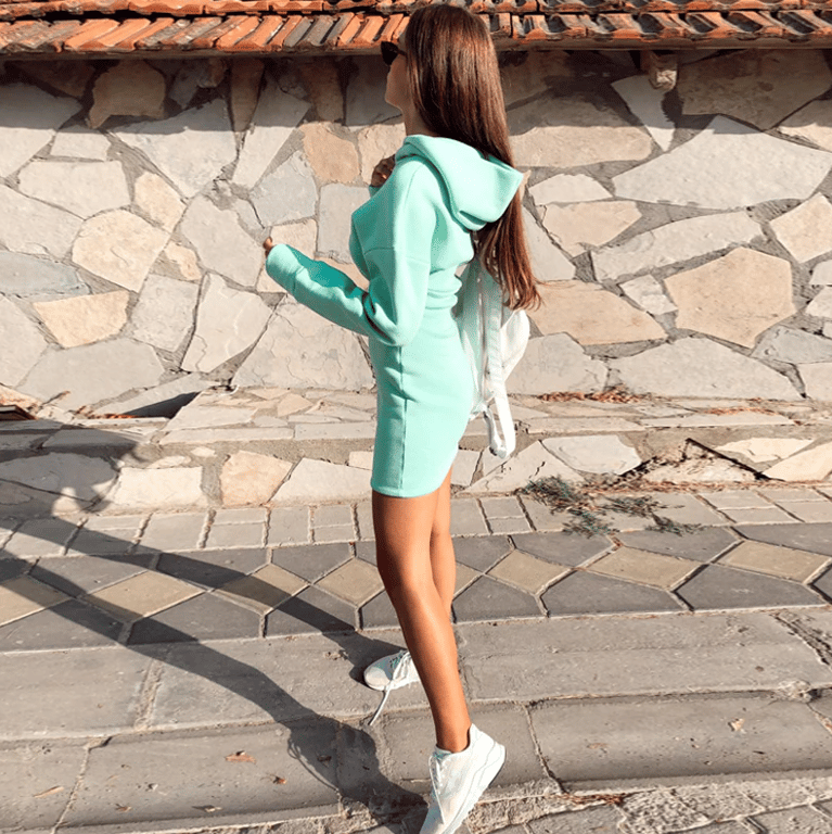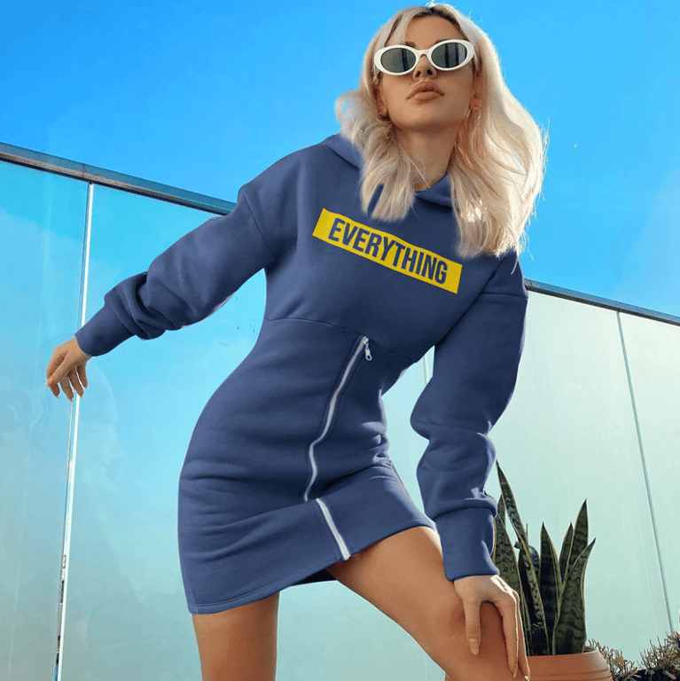 • Tags: Women's dress, summer dress, comfortable dress, short dress, long sleeve, printed, with text, with zip, hoodie dress, with hood