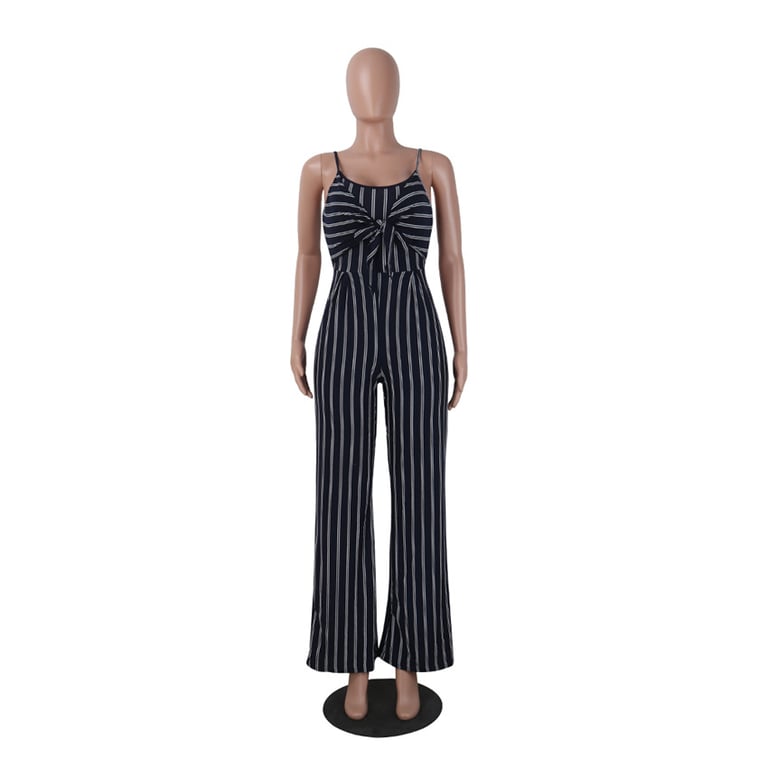 The overall with long wide legs and a bow on the chest is the perfect choice for an endless stylish party.