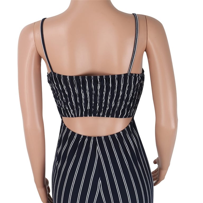 Women's striped jumpsuit with a bow