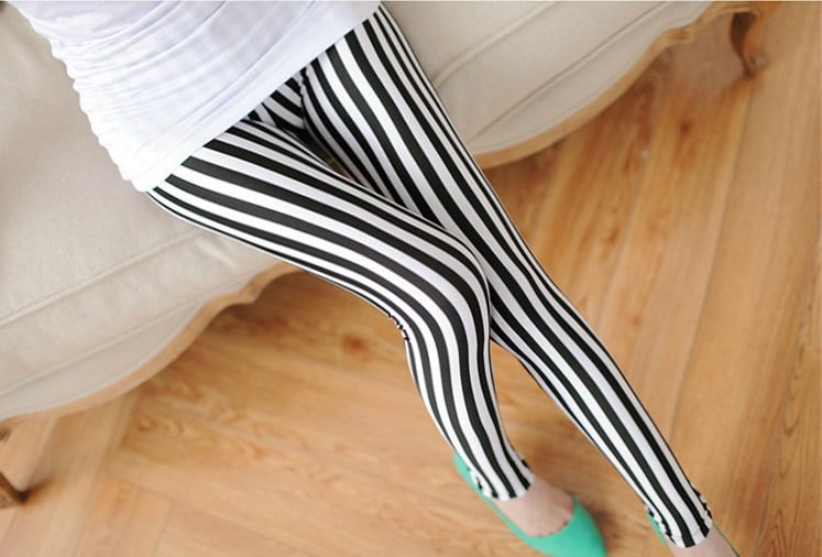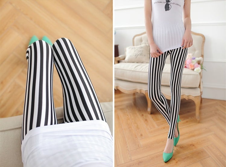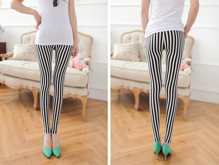 Stay in style with these leggings featuring vertical black and white stripes.