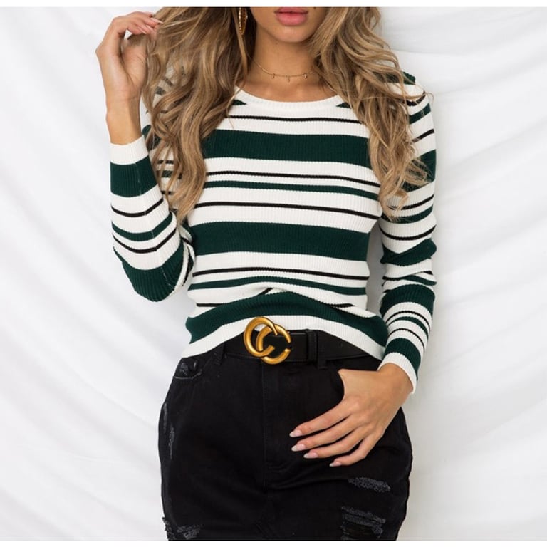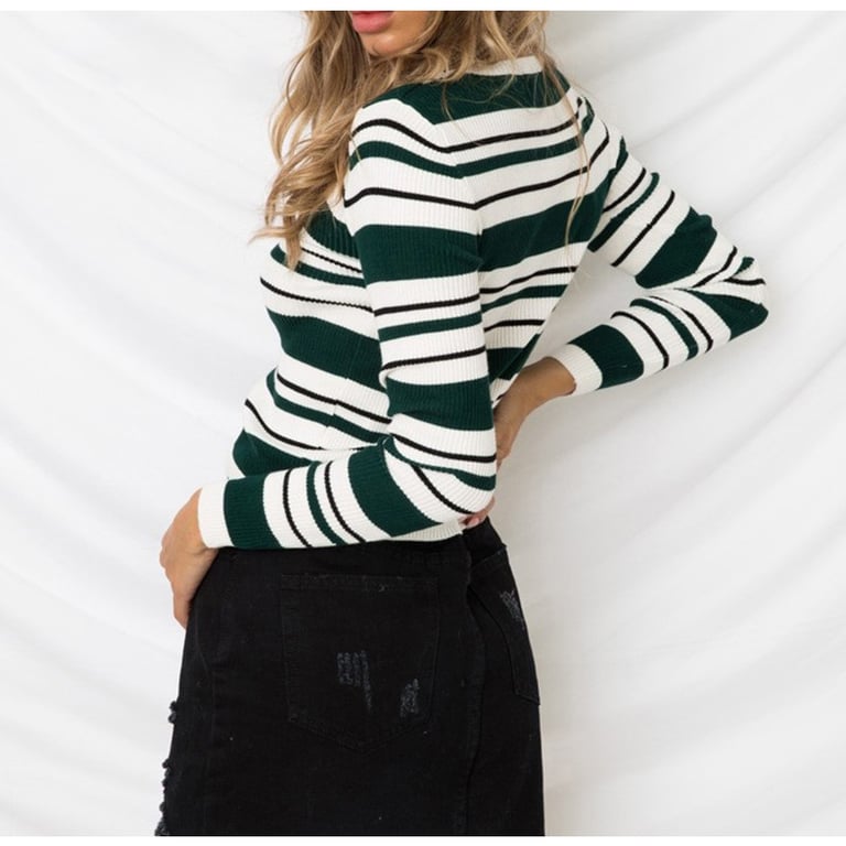 Women's striped long-sleeve sweater Jewela – green