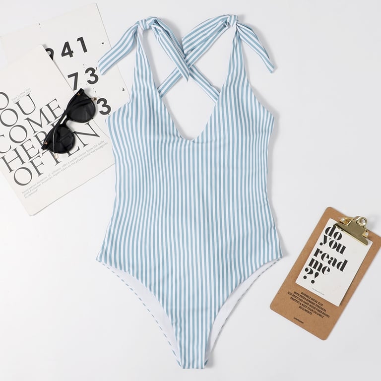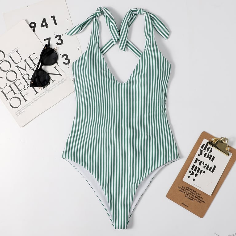 Women's Striped One-Piece Swimsuit with Knots Aurora