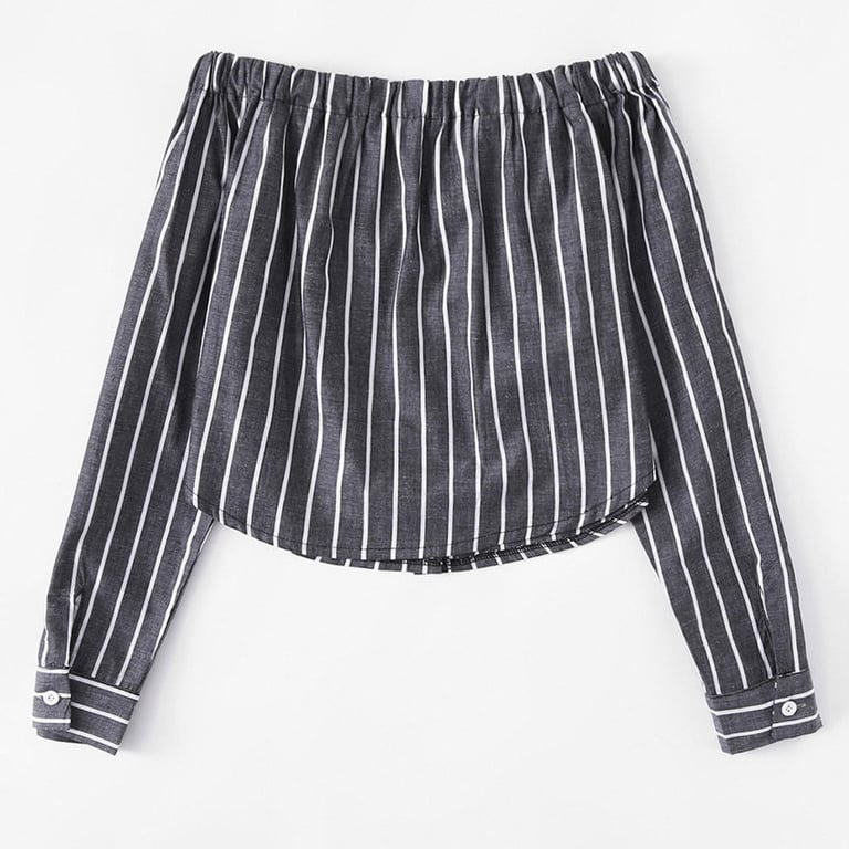 Women's striped shirt with exposed shoulders