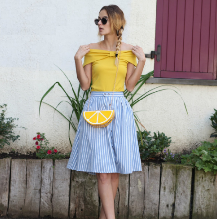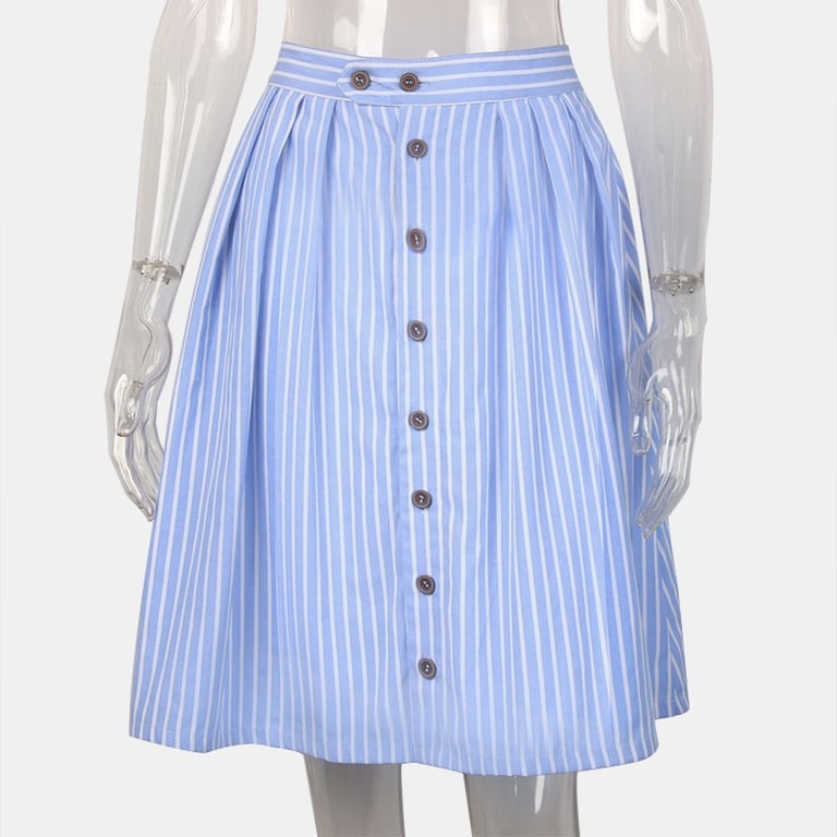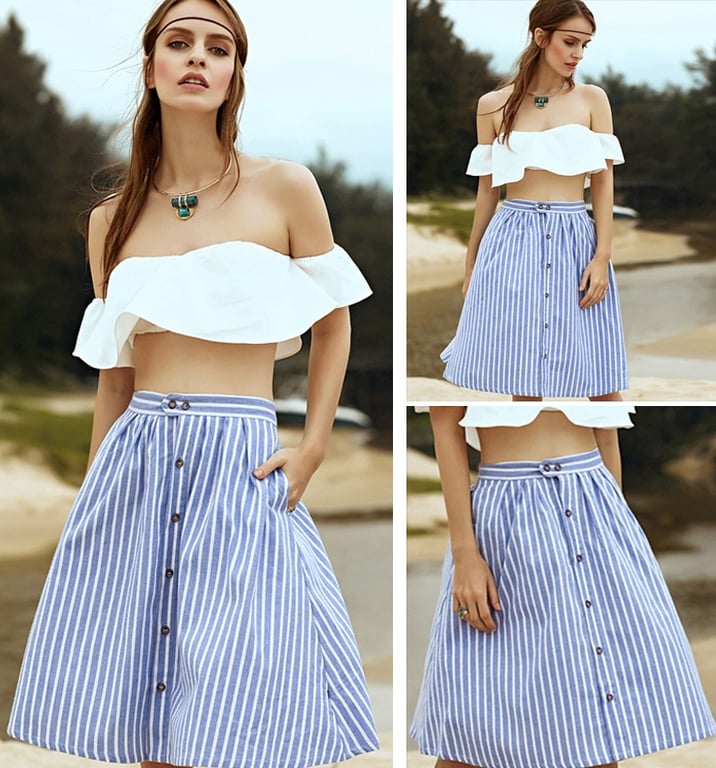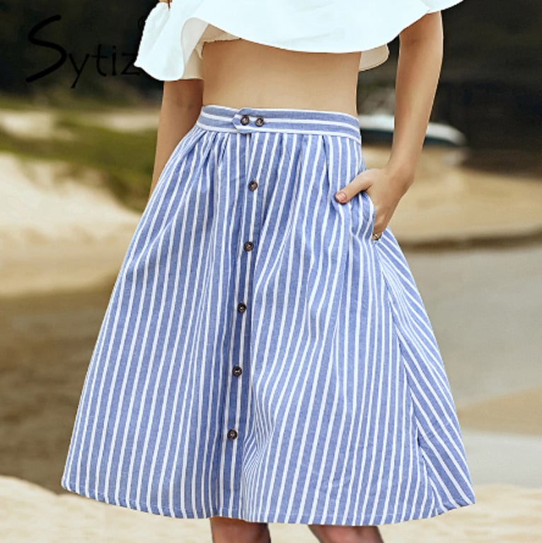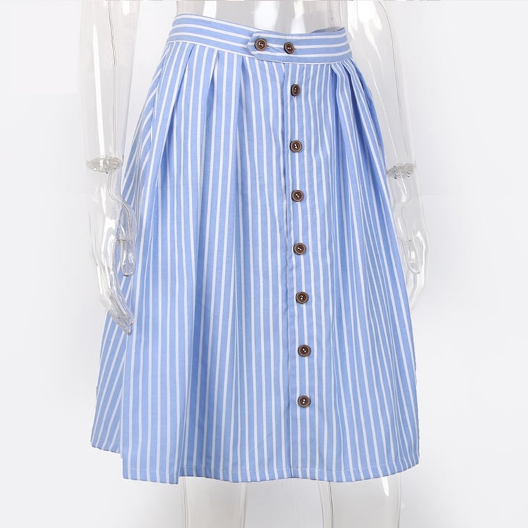 A beautiful striped skirt that fastens with several buttons will be a favourite piece in your wardrobe.