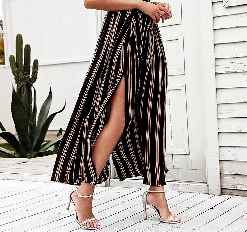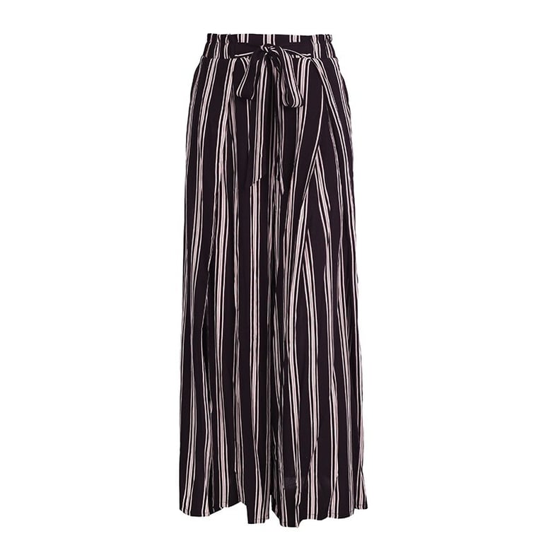 Women's striped trousers with a slit.