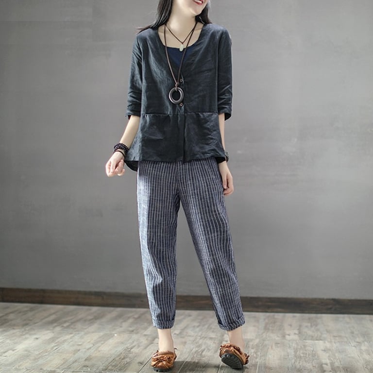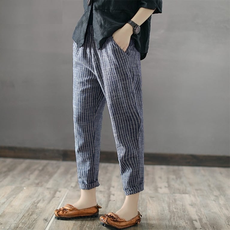 Women's striped trousers with elastic waistband