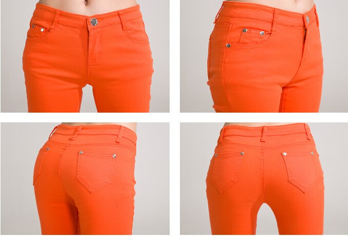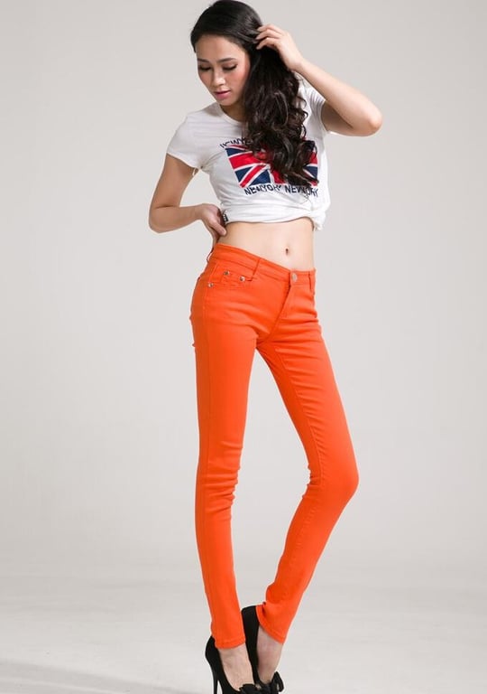 Elegant women's jeans in orange.