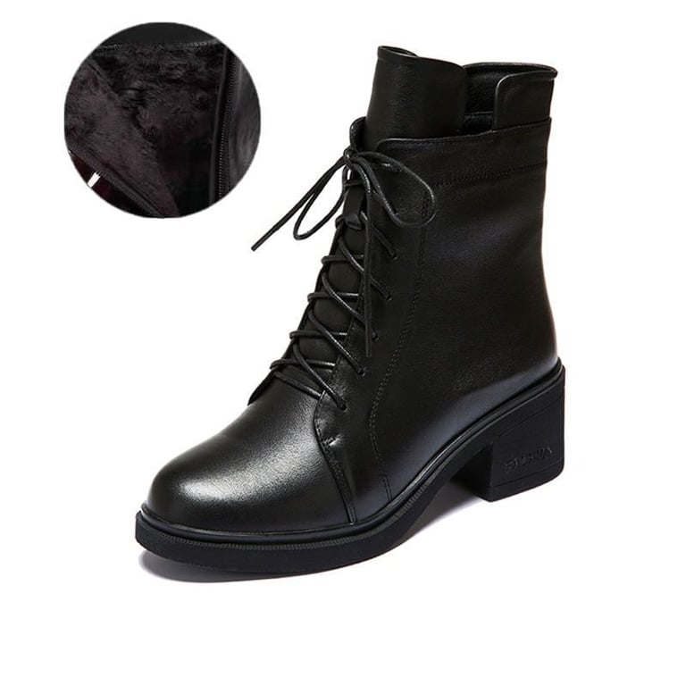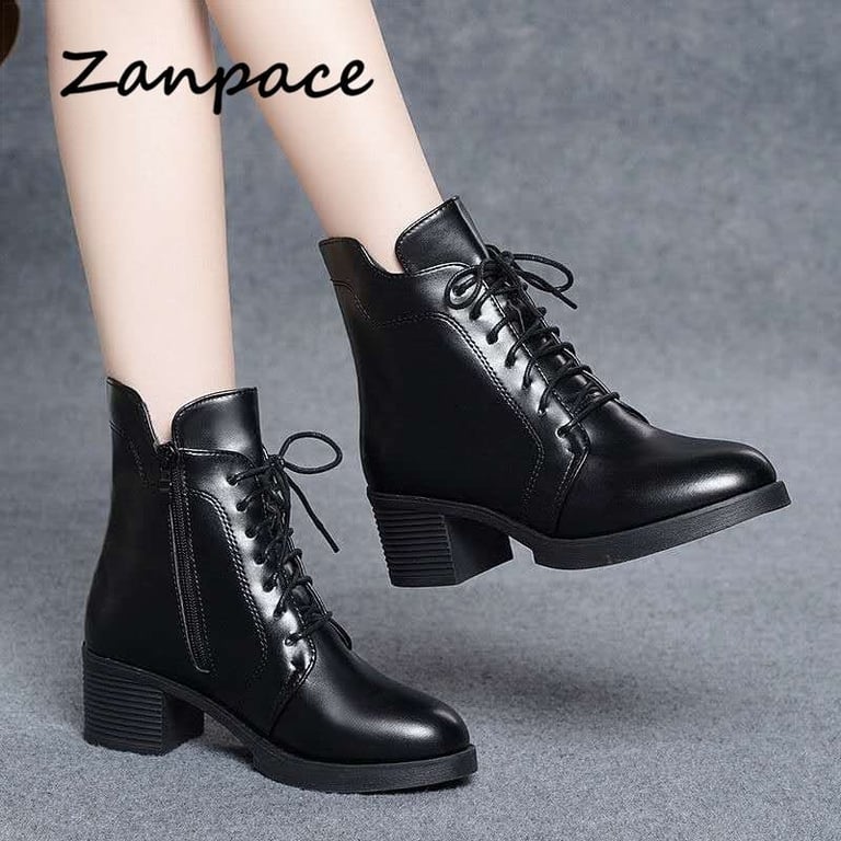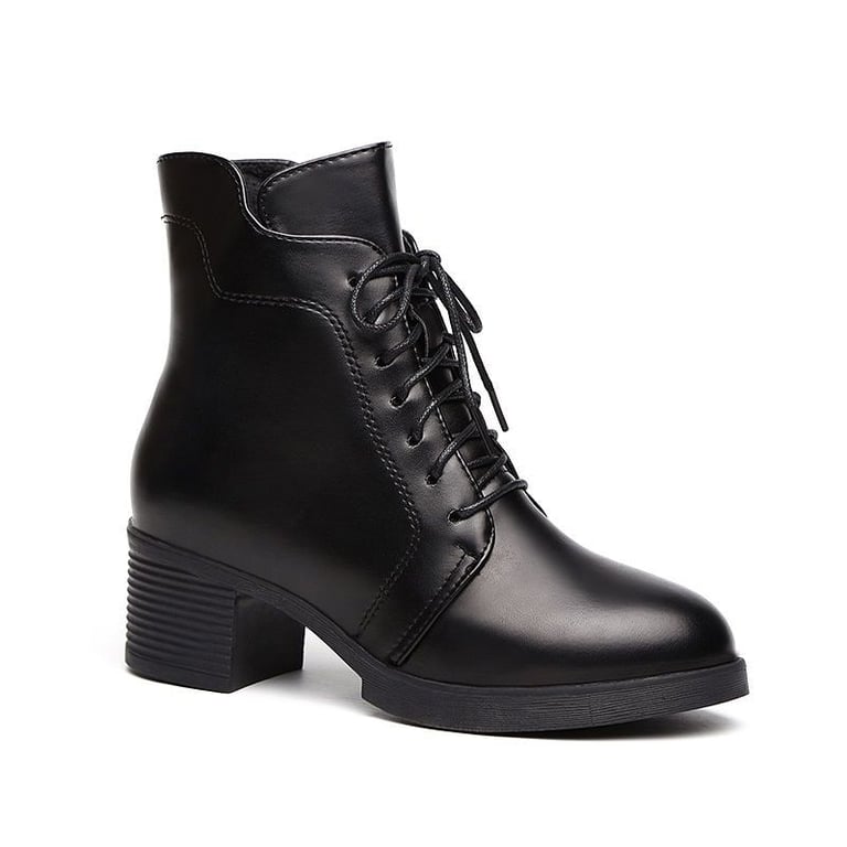 • The boots feature lace-up fastening and a medium-height heel of approximately 5 cm.