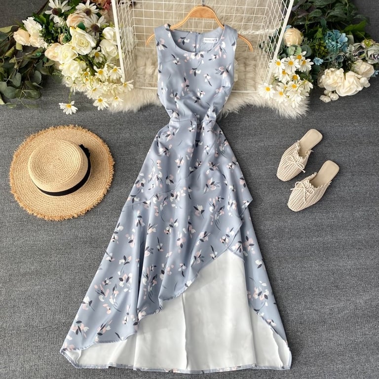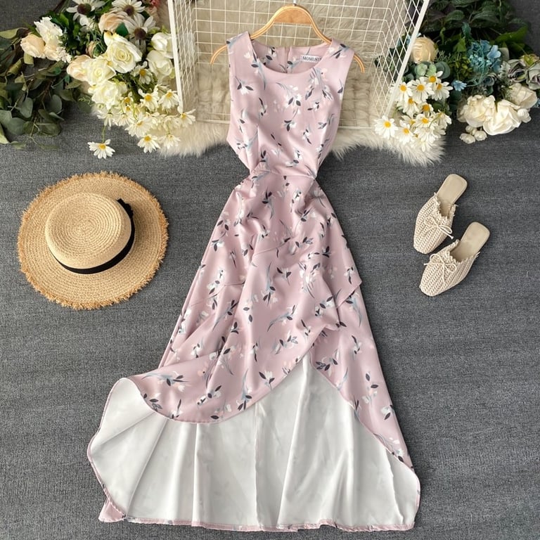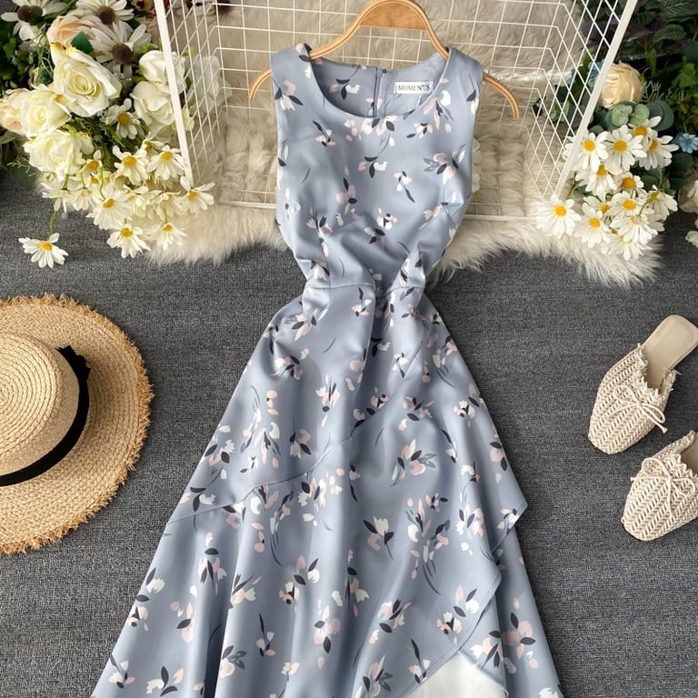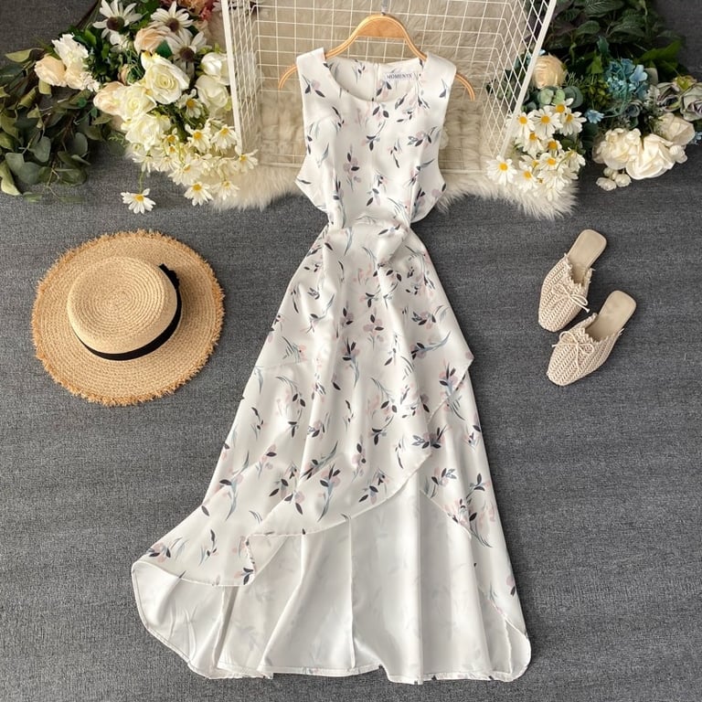 • Tags: dress, sexy dress, floral dress, round neck dress, summer, spring, summer clothing, beach, women's dress, women's long dress, strappy dress, long dress, dress with slit