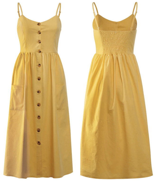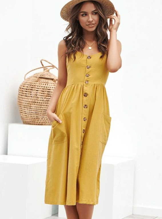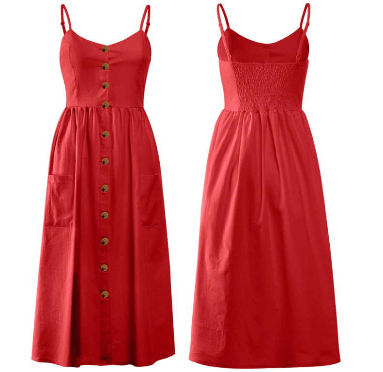 Women's Summer Boho Strappy Dress with Buttons and Pockets Monica