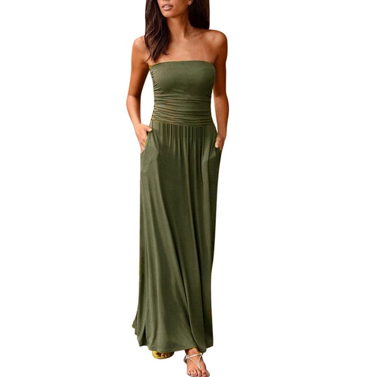 Women's long sleeveless dress for summer enjoyment.